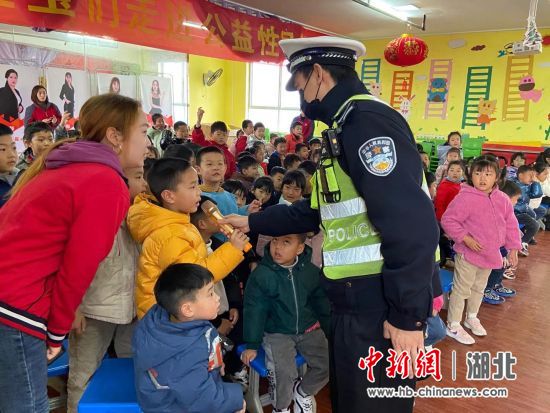 中新网湖北新闻4月5日电 (李琦雯 杨瑞)襄阳市襄州交警5日走进辖区幼儿园,开展“开学第一课”主题宣讲活动,为学校师生带来新学期首堂交通安全教育课。