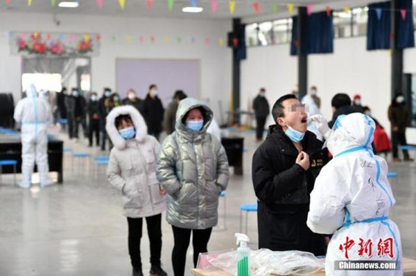 1月20日,河北石家庄赵陵铺路街道后太保社区,市民进行核酸采样。当日,石家庄市启动第三轮全员核酸检测,3天内完成。 中新社记者 翟羽佳 摄
