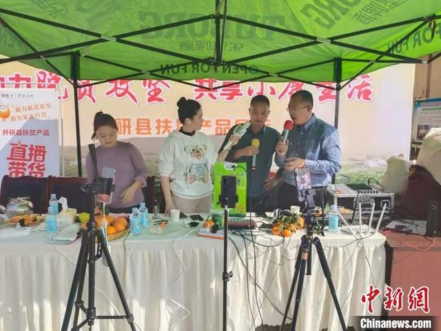 井研县农产品企业工作人员在进行直播带货。中新网记者 张旭 摄