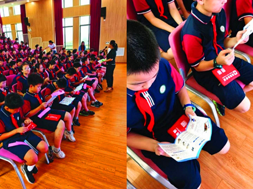 宣讲现场,工作人员向学生们进行了拒乘非法客运车辆的宣传,并发放了非法客运的宣传单页和宣传品,向学生倡导“珍惜生命 拒乘黑车”的正确观念,鼓励学生们带动家长一同拒绝非法客运,保障自己和家人的出行安全,共同提高安全意识。