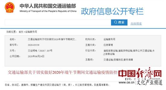 关于切实做好2020年端午节期间交通运输疫情防控和服务保障工作的通知
