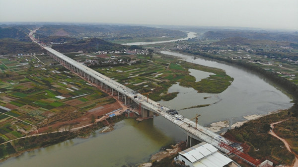 成渝间第四条高速公路——成资渝高速公路,预计2020年底前通车。图为2019年12月26日,成资渝高速沱江特大桥合龙。 赵明摄