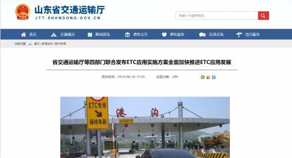 齐鲁网·闪电新闻12月19日讯 今年6月25日,经山东省政府同意,山东省交通运输厅、山东省发展和改革委员会、山东省公安厅、山东省财政厅四部门联合印发了《山东省加快推进ETC应用实施方案》。方案提出,实现服务网点由城市到乡镇、社区、农村,网点全覆盖、服务全覆盖。各地充分利用车管所、加油站、4S店、汽车维修厂、停车场等渠道,为社会车辆提供一站式全流程的ETC安装服务。
